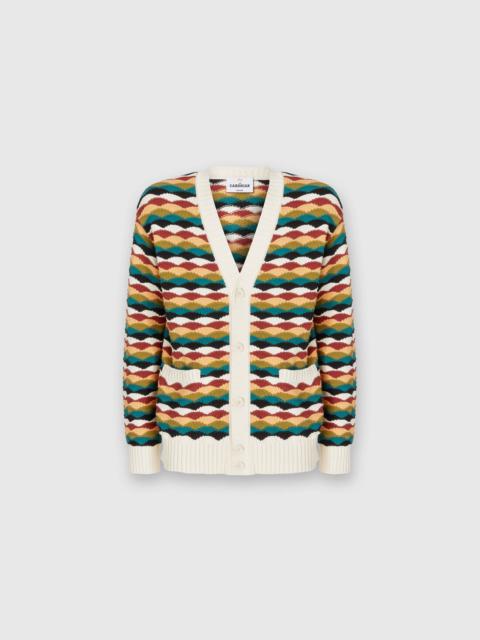 Cotton-blend cardigan with wave pattern and contrasting piping