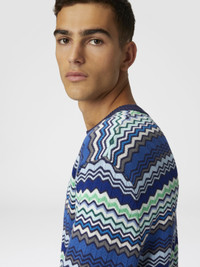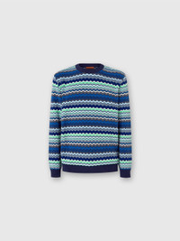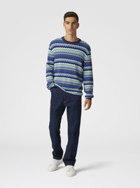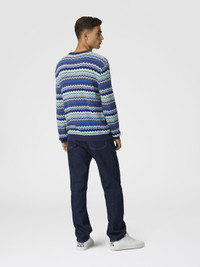 Cotton crew-neck pullover with micro zigzag and contrasting piping