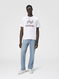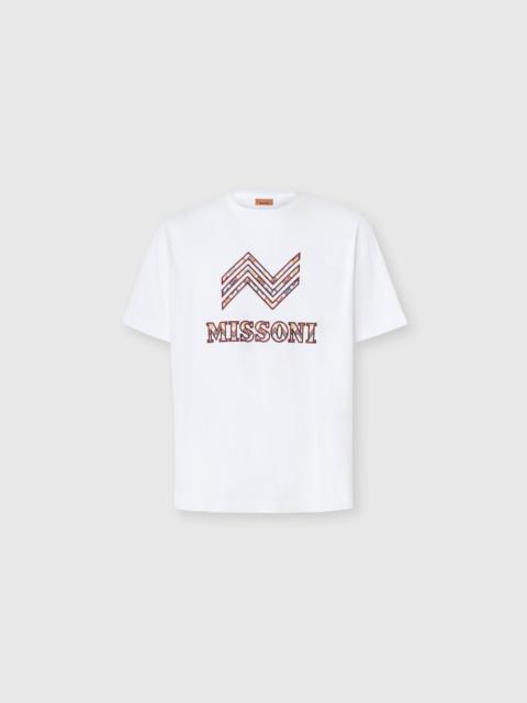 A zigzag insert accompanies the logo on this cotton T-shirt with a relaxed fit, creating a visual contrast that celebrates the iconic style of the maison. The simple design is enriched with details that evoke Missoni's artisan tradition, while maintaining a contemporary aesthetic. MORE DETAILS - Short-sleeved polo shirt - Cotton pique workmanship - Zig Zag Embroidery - Contrasting profiles Composition: EXTERNAL:100%Cotton; INSERTS:100%Cotton Care instructions: Hand wash ; Ironing maximum temperature 110°C - without steam ; Do not tumble dry ; Do not dry clean ; Do not bleach Made in: Tunisia Product ID US25SL0KBJ00NMS01HD