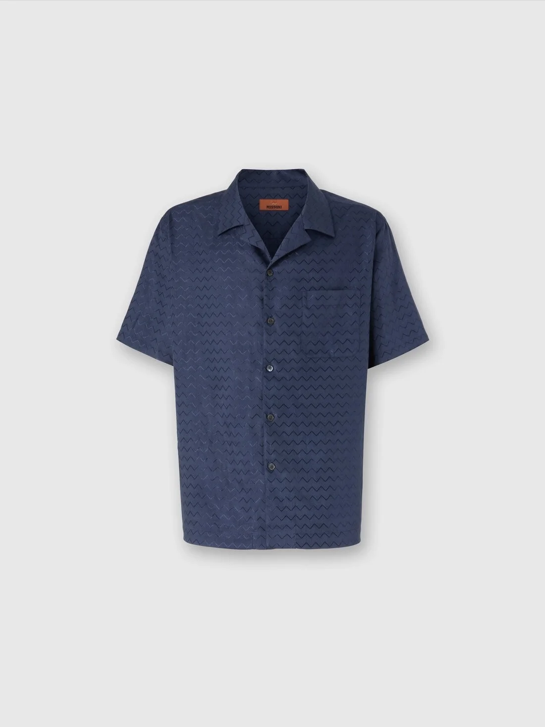 Cotton, viscose and linen bowling shirt with shiny zigzag pattern