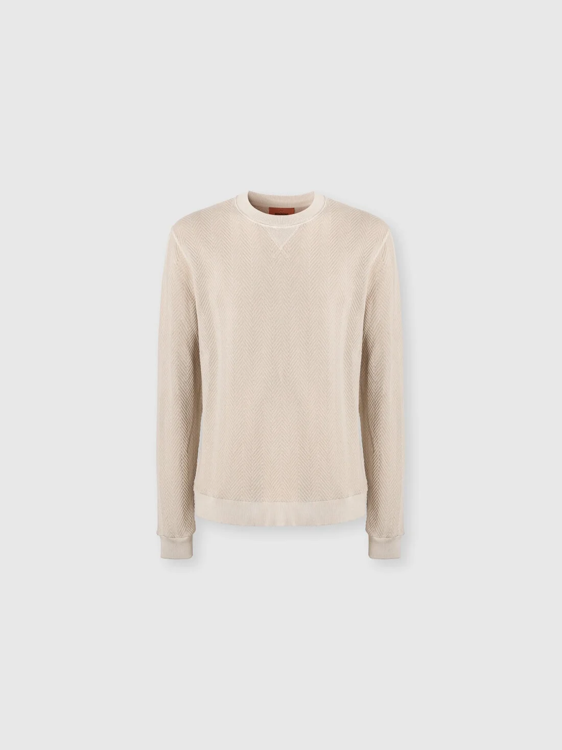 Crew-neck cotton and viscose sweatshirt with tone-on-tone zigzag pattern
