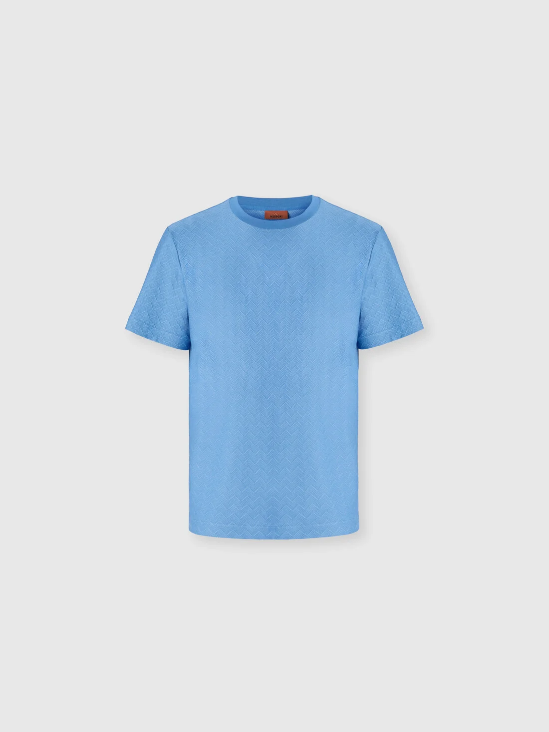 Crew-neck cotton jacquard T-shirt with tone-on-tone zigzag design