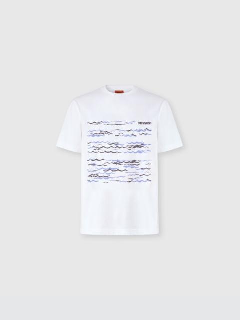MORE DETAILS - Men’s crew-neck T-shirt - 100% cotton - Irregular macro zigzag print Composition: EXTERNAL:100%Cotton Care instructions: Ironing maximum temperature 110°C - without steam ; Wash max 30°C - Mild process ; Wash inside out ; Do not tumble dry ; Iron inside out ; Do not dry clean ; Do not iron decorations ; Do not bleach Made in: Tunisia Product ID BS26SL00BJ00QPS01KS