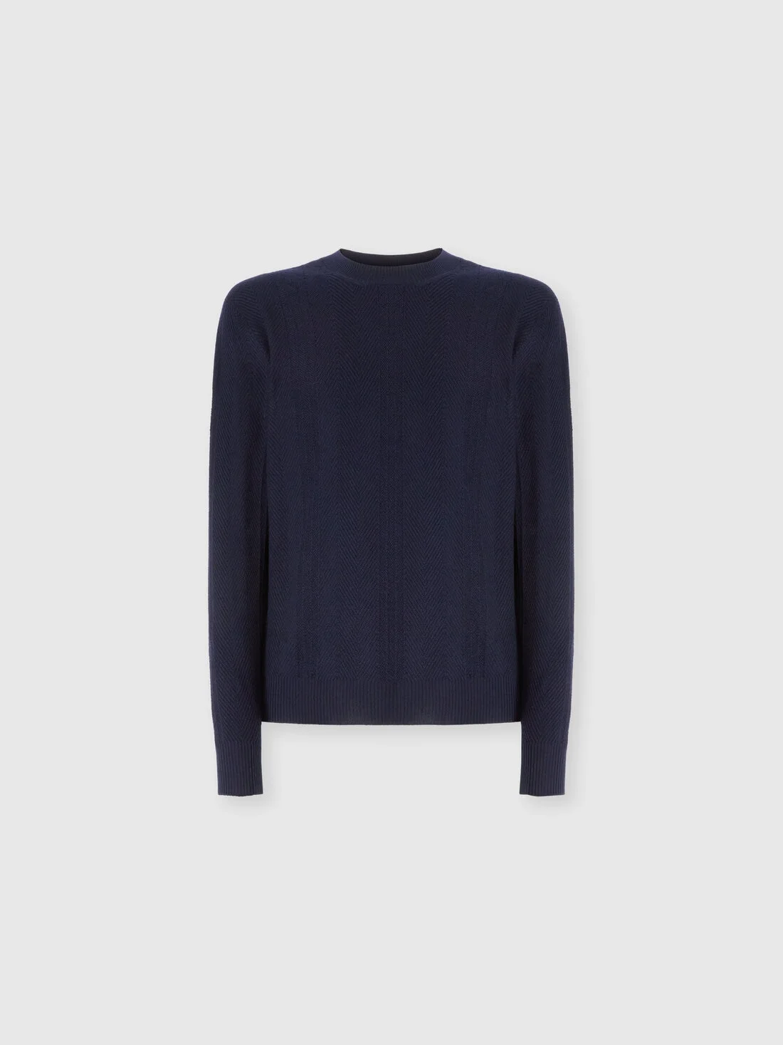 Crew neck sweater in wool with chevron pattern