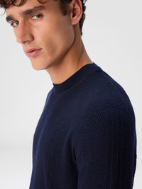 This men’s crew-neck sweater in wool is made with refined multi-stitch rice grain workmanship, giving the garment a rich and tactile texture. The tone-on-tone chevron pattern subtly emerges, adding depth and movement to a design that is both essential and refined. MORE DETAILS - Crew-neck sweater - Multi-stitch rice knit - Tone-on-tone chevron motif - 100% wool Composition: EXTERNAL:100%Wool Care instructions: Hand wash ; Dry cleaning in tetrachloroethene - mild process ; Ironing maximum temperature 110°C - without steam ; Do not tumble dry ; Dry flat ; Do not bleach Made in: Italy Product ID US25WN0YBK01CWS72MH