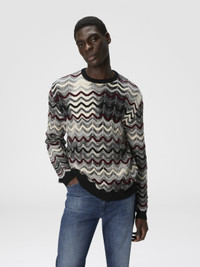 Crew Neck Sweater with Geometric Zigzag Pattern