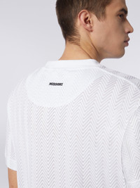 The men’s short-sleeved crew-neck T-shirt, a basic garment par excellence, is transformed by the Missoni touch into a truly appealing garment, thanks to the tone-on-tone zigzag motif that runs throughout it. MORE DETAILS - Men’s short-sleeved knit - Raschel chevron - Crew-neck T-shirt - Cotton blend Composition: EXTERNAL:74%Cotton, 26%Rayon Care instructions: Ironing maximum temperature 110°C - without steam; Dry cleaning in tetrachloroethene - mild process; Wash max 30°C - Very mild process; Do not tumble dry; Do not bleach Made in: Italy Product ID UC24SL00BR00JC10601