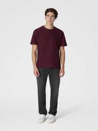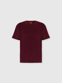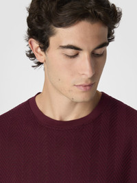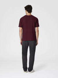 A refined cotton and viscose knit for this men's short-sleeve crew-neck T-shirt. The raschel workmanship with tone-on-tone zigzag defines the relaxed-fit model. MORE DETAILS - Crew-neck T-shirt short sleeve - Cotton and viscose knit - Tone-on-tone raschel pattern Composition: EXTERNAL:74%Cotton, 26%Rayon; INSERTS:100%Cotton Care instructions: Ironing maximum temperature 110°C - without steam ; Hand wash ; Dry cleaning in tetrachloroethene - mild process ; Do not tumble dry ; Dry flat ; COOL HAND WASH ; Do not bleach Made in: Italy Product ID US25WL02BR0122S417O