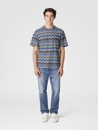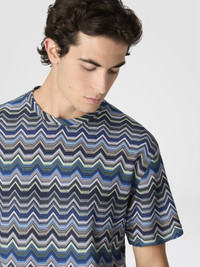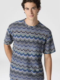 Men's short-sleeve T-shirt made of 100% cotton, with refined raschel workmanship and Missoni’s signature geometric zigzag motif. A piece that expresses the maison’s unmistakable graphic identity, combining refined texture and contemporary style. MORE DETAILS - T-shirt short sleeve - Raschel knit - Geometric zigzag mix pattern - 100% cotton Composition: EXTERNAL:100%Cotton Care instructions: Ironing maximum temperature 110°C - without steam ; Hand wash ; Dry cleaning in tetrachloroethene - mild process ; COOL HAND WASH ; Do not tumble dry ; Do not bleach Made in: Italy Product ID US25WL02BR012ZS6155
