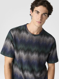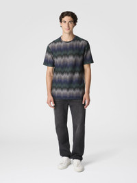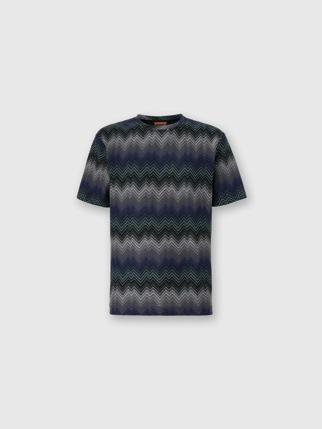 Men's short-sleeve T-shirt made in a cotton blend, with refined raschel workmanship and Missoni’s signature irregular zigzag. A piece that expresses the maison’s unmistakable graphic identity, combining refined texture and contemporary style. MORE DETAILS - T-shirt short sleeve - Raschel knit - Irregular zigzag mix pattern - Cotton blend Composition: EXTERNAL:77%Cotton, 23%Polyester Care instructions: Ironing maximum temperature 110°C - without steam ; Hand wash ; Dry cleaning in tetrachloroethene - mild process ; COOL HAND WASH ; Do not tumble dry ; Do not bleach Made in: Italy Product ID US25WL02BR012XS91P2