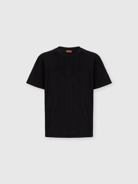 Men’s short-sleeve T-shirt made of 100% cotton, with refined raschel workmanship and tone-on-tone micro zigzag. A piece that expresses Missoni’s unmistakable graphic identity, combining subtle and refined texture with an essential and contemporary style. MORE DETAILS - T-shirt short sleeve - Raschel knit - Mini zigzag pattern - 100% cotton Composition: EXTERNAL:100%Cotton Care instructions: Ironing maximum temperature 110°C - without steam ; Hand wash ; Dry cleaning in tetrachloroethene - mild process ; Do not tumble dry ; COOL HAND WASH ; Do not bleach Made in: Italy Product ID US25WL02BR013KSM9S6