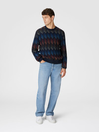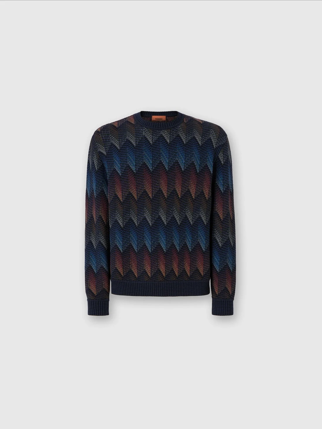 Crewneck sweater in gradient cotton chevron blend with contrasting piping
