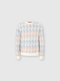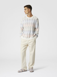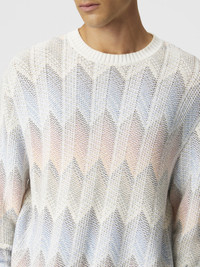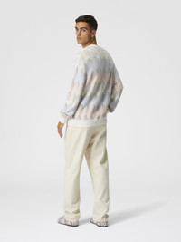 Crewneck sweater in gradient cotton chevron blend with contrasting piping