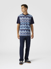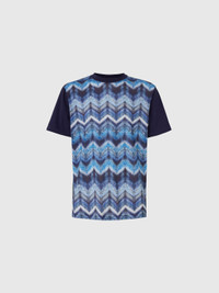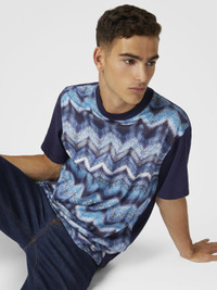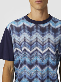 Crewneck T-shirt in airbrush-effect zigzag print cotton