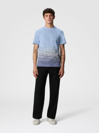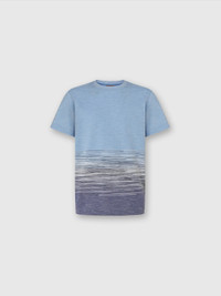 Crewneck T-shirt in slub cotton and linen with zigzag embroidery