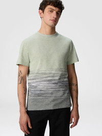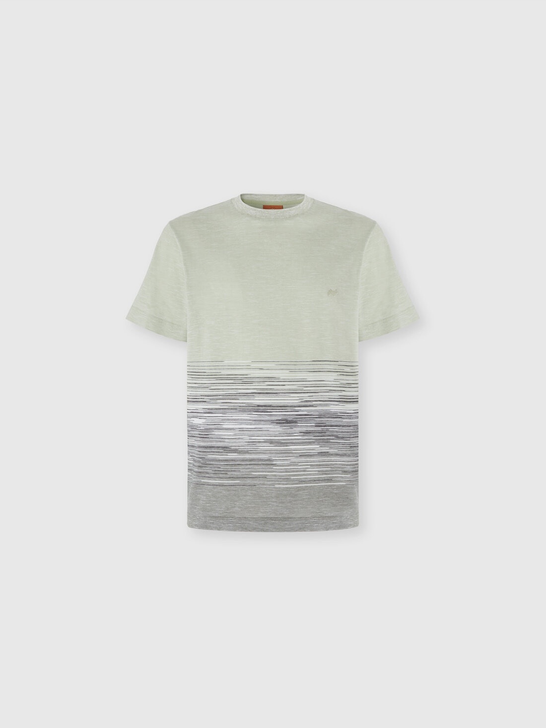 Crewneck T-shirt in slub cotton and linen with zigzag embroidery