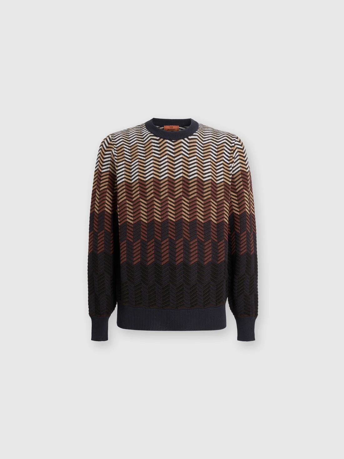 The model in pure virgin wool knit rewrites the stylistic features of the crewneck pullover. The contrasting piping enhances the sophistication of the degrade zigzag pattern, in this garment that combines everyday casual with a decontracte elegance. MORE DETAILS - Crewneck Pullover - Virgin wool sweater - Zig Zag Pattern - Contrasting profiles Composition: EXTERNAL:100%Virgin wool Care instructions: Hand wash ; Ironing maximum temperature 110°C - without steam ; Dry cleaning in tetrachloroethene ; Do not tumble dry ; Dry flat ; Iron with a cloth between ; Do not bleach Made in: Italy Product ID US24WN0QBK037RSM9GL