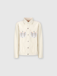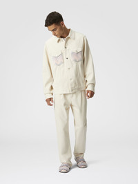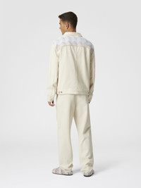 The classic denim jacket is revisited with bold chevron knit inserts, creating a contrast between the hardness of denim and the delicacy of the geometric pattern. A garment that redefines the concept of outerwear with originality. MORE DETAILS - Joggers style trousers - Cotton and cashmere workmanship - Iconic tonal zigzag pattern Composition: EXTERNAL:100%Cotton; INSERTS:79%Cotton, 21%Polyamide Care instructions: Ironing maximum temperature 110°C - without steam ; Wash max 30°C - Very mild process ; Do not tumble dry ; Do not dry clean ; Do not bleach Made in: Italy Product ID US25SC07BW00UWS01G1