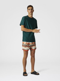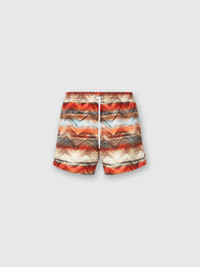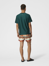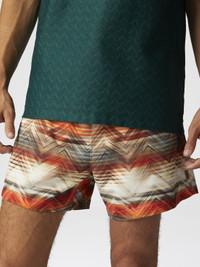 These swim trunks stand out for their degrade macro zigzag print, which creates a vibrant color transition effect. Ideal for those who love a strong summer style, these boxer shorts combine comfort and bold design in a single garment. MORE DETAILS - Bowling cut shirt - Iconic gradient zig zag pattern - Practical breast pocket Composition: EXTERNAL:100%Polyester; LINING : 100%Polyester Care instructions: Wash max 30°C - Mild process ; Do not tumble dry ; Do not dry clean ; Do not iron ; Do not bleach Made in: Tunisia Product ID US25SP00BW00W2S208J
