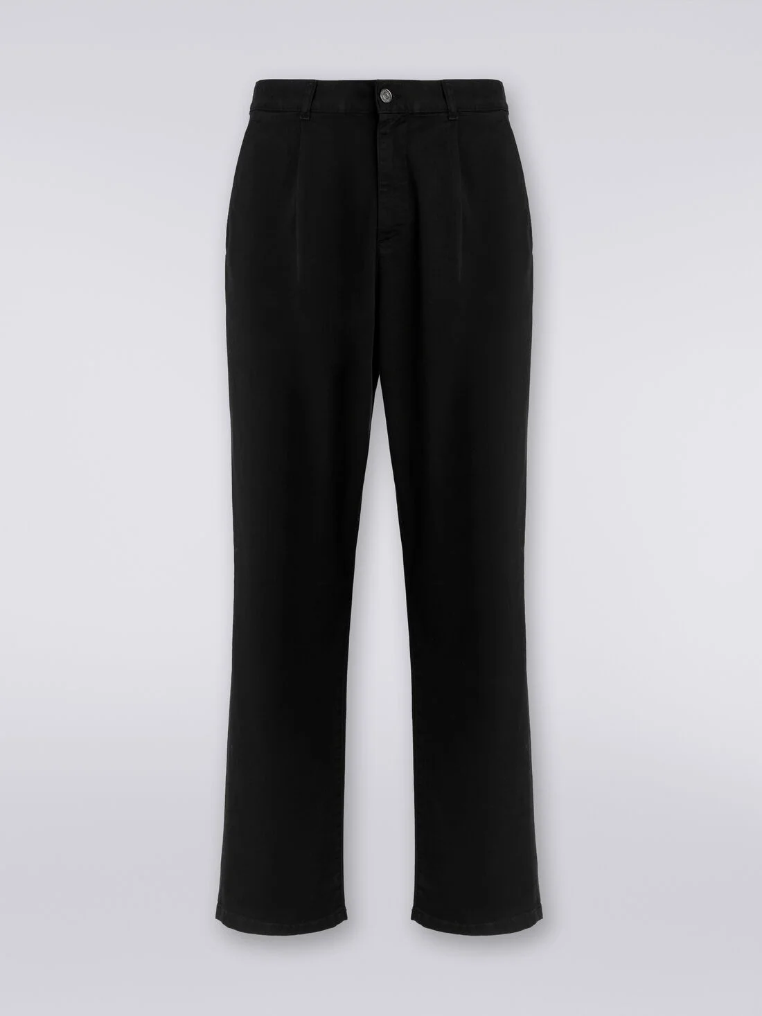 Classic men’s chino trousers in cotton gain a contemporary twist thanks to Missoni’s touch, transforming them into the perfect everyday look complement. Featuring a relaxed fit and a small contrasting embroidered monogram, they present pleats at the waist and practical side pockets. MORE DETAILS - Cotton chino trousers - Front pleats - Side pockets - Back pocket with contrasting embroidered monogram Composition: EXTERNAL:97%Cotton, 3%Elastane; LINING : 100%Cotton Care instructions: Dry cleaning in tetrachloroethene; Ironing maximum temperature 150°C; Wash max 60°C - Mild process; Tumble drying at lower temperature; Line dry; Wash with similar colours; Do not bleach Made in: Italy Product ID US23WI0QBW00QG93911