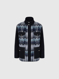 Men’s field jacket in a wool and cotton blend, crafted in knit with loom workmanship and the iconic zigzag motif. The large front pockets emphasize its functional character, while the refined texture reflects Missoni’s distinctive style in a utility-chic key. MORE DETAILS - Field jacket - Loom-knit construction - Woven zigzag pattern - Wool and cotton blend Composition: EXTERNAL:72%Wool, 22%Cotton, 6%Polyamide; INSERTS:38%Cotton, 27%Polyester, 19%Acrylic, 12%Wool, 4%Other fibres; INTERNAL:100%Polyester Care instructions: Ironing maximum temperature 110°C - without steam ; Dry cleaning in tetrachloroethene - mild process ; Do not tumble dry ; COOL HAND WASH ; Do not wash ; Do not bleach Made in: Italy Product ID US25WC0FBC0059S72LA