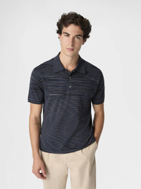 Crafted from slub mercerized cotton, this men’s polo shirt stands out for its smooth hand and the natural sheen of the fabric, the result of a process that enhances the quality and brilliance of the fibers. An essential piece defined by understated, contemporary elegance in pure Missoni style. MORE DETAILS - Men’s short-sleeved polo shirt - Mercerized cotton - Flamed pattern Composition: EXTERNAL:94%Cotton, 5%Polyamide, 1%Elastane Care instructions: Ironing maximum temperature 110°C - without steam ; Hand wash ; Dry cleaning in tetrachloroethene ; Do not tumble dry ; Dry flat ; Iron with a cloth between ; Do not bleach Made in: Italy Product ID US26S20RBK01HUF700V