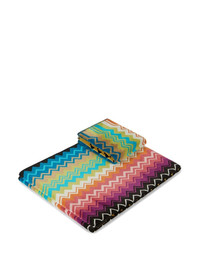 Giacomo two-piece towel set black/multicolour cotton signature zigzag woven design hand towel with a bath towel terry-cloth effect The item you receive may differ slightly from the item photographed. This is due to the artisanal nature in which all Missoni products are constructed. Imported Composition Cotton 100% SIZE & FIT Measurement LENGTH 45.27 in(115 cm) WIDTH 27.55 in(70 cm)