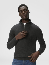 Half-Zip Sweater with Tone-on-Tone Zigzag Pattern