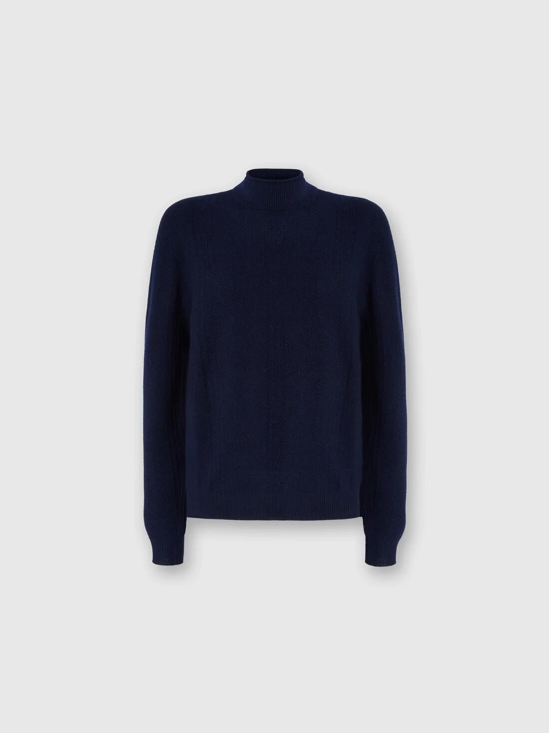 High-Neck Sweater with Tone-on-Tone Chevron Pattern