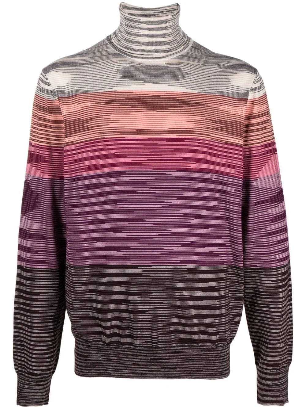 intarsia-knit wool jumper Highlights - Multicolour - Wool - Knitted construction - Intarsia knit - Roll neck - Long sleeves - Ribbed cuffs and hem - The item you receive may differ slightly from the item photographed. this is due to the artisanal nature with which all missoni products are constructed. Made in Italy Composition Wool 100% SIZE & FIT Model measurements Height 6 ft 2 in(1.87 m) Bust/Chest 36.61 in(93 cm) Hips 35.03 in(89 cm) Waist 27.95 in(71 cm) FittingInformation Designed for a relaxed fit, this piece allows for comfort and movement when worn Made with a lightweight knit, this piece offers some stretch This piece fits true to size – take your usual size Washing instructions Hand Wash
