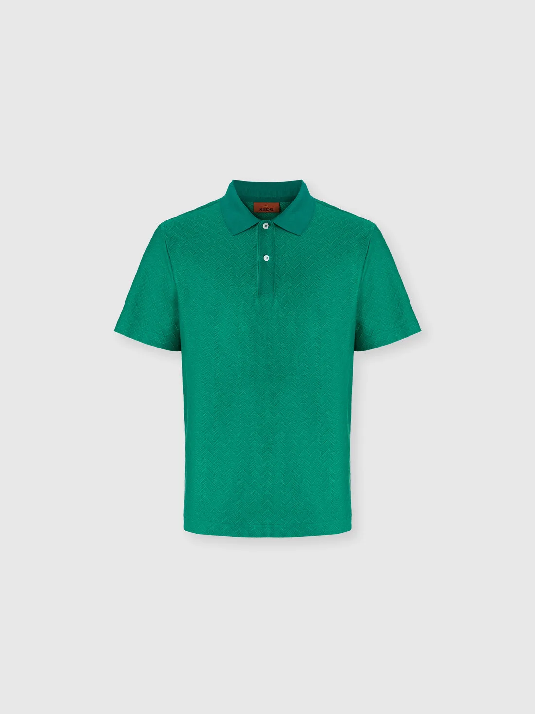 Jacquard cotton polo shirt with tone-on-tone zigzag design