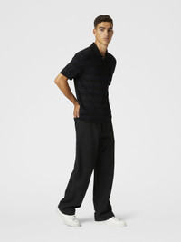 The knitted polo shirt in a cotton and viscose blend stands out for its zigzag weave, which gives the garment three-dimensionality. The regular fit and light texture create a sophisticated garment, which embodies the perfect balance between casual and elegant, an expression of Missoni's know-how. MORE DETAILS - Crew neck T-shirt - Cotton Processing - Gradient zig zag decorative insert - Relaxed fit Composition: EXTERNAL:50%Cotton, 25%Polyester, 25%Rayon Care instructions: Ironing maximum temperature 110°C - without steam ; Hand wash ; Dry cleaning in tetrachloroethene ; Do not tumble dry ; Dry flat ; Do not bleach Made in: Italy Product ID US25S203BK0040S91NF