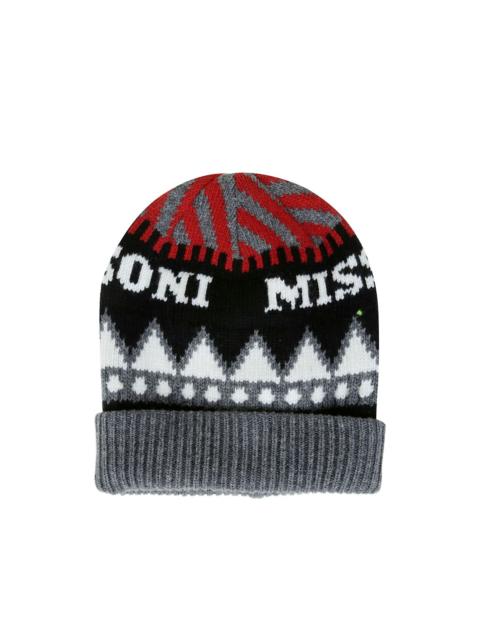 logo-intarsia patterned beanie Highlights - Black/grey - Logo intarsia - Geometric pattern - Ribbed cuff Made in Italy Composition Virgin Wool 100%