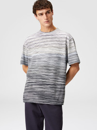 The crew-neck t-shirt is offered with a very Missoni variant: in shaded slub jersey and with a logo print on the back. MORE DETAILS - Crew Neck T-Shirt - Gradient Flame Print - Rear logo lettering Composition: EXTERNAL:100%Cotton Care instructions: Ironing maximum temperature 110°C - without steam ; Dry cleaning in tetrachloroethene ; Wash max 30°C - Very mild process ; Do not tumble dry ; Dry flat ; Do not bleach Made in: Romania Product ID US24WL0ABJ00E5SM9DE