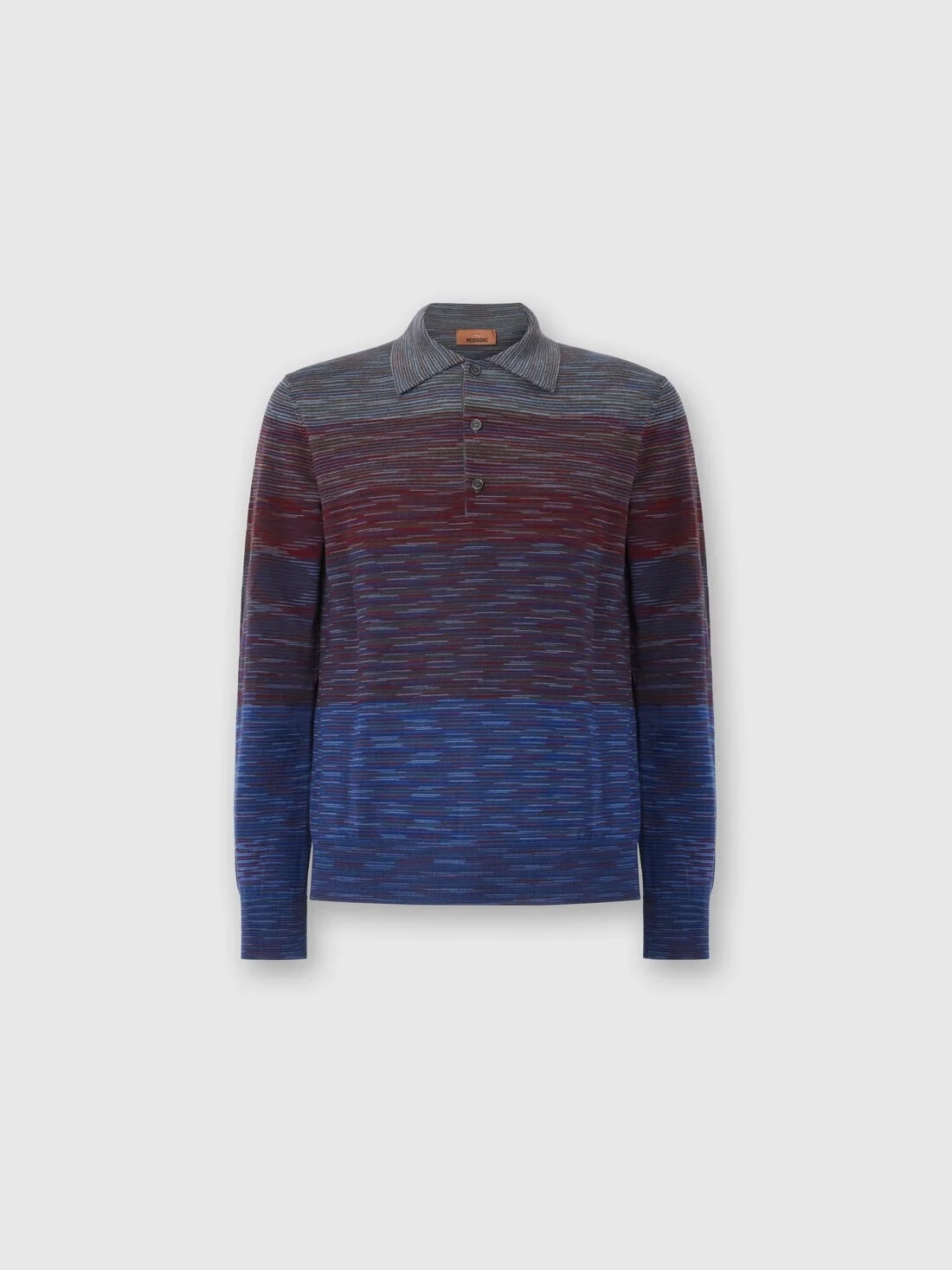 Long Sleeve Polo in Pure Wool with Flame Pattern