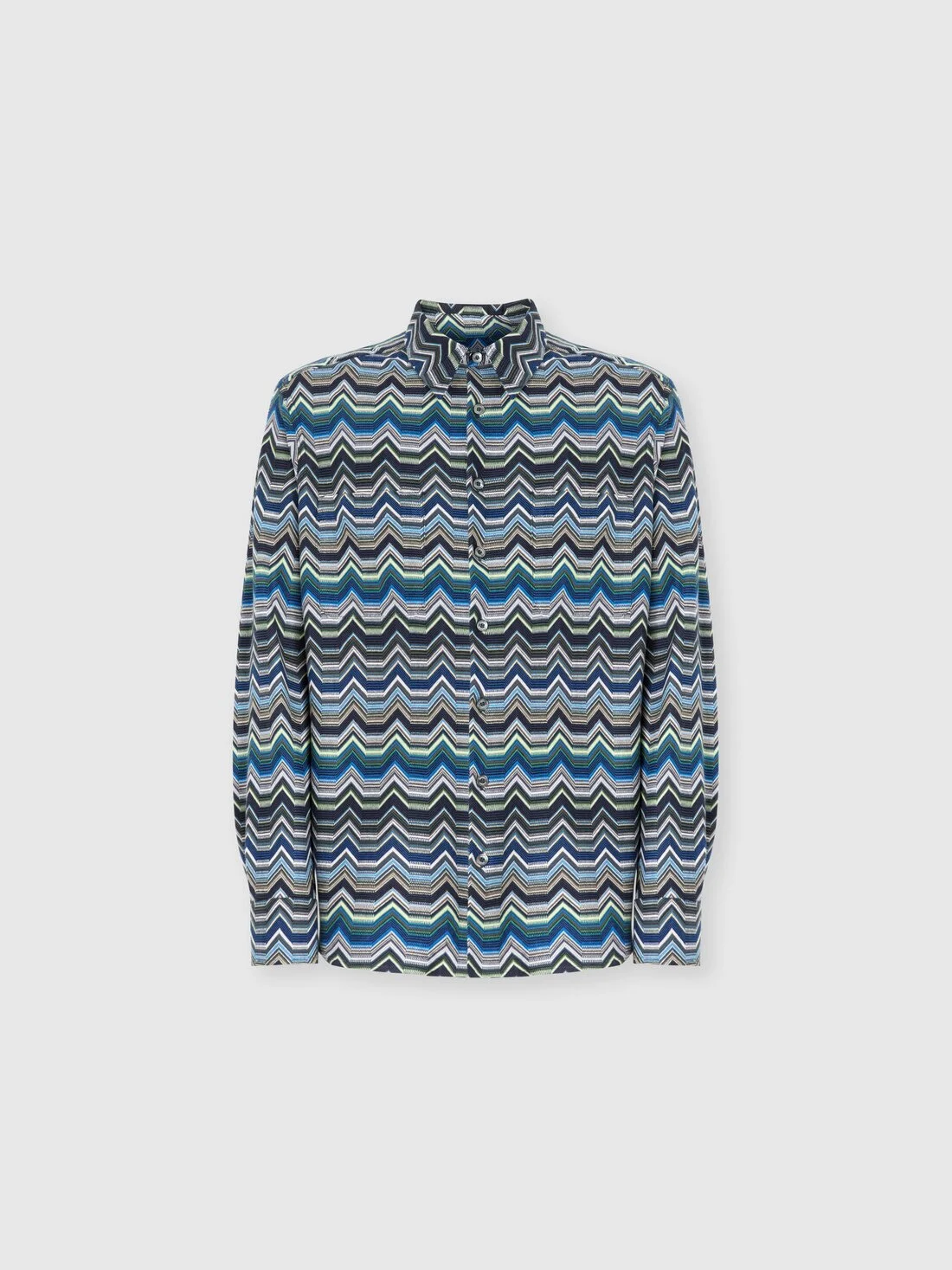 Men's long-sleeve shirt with raschel workmanship, enriched by the reimagined geometric zigzag motif typical of Missoni, in 100% cotton. A piece that blends craftsmanship and contemporary design, for a distinctive and modern look, expressing the brand's mastery. MORE DETAILS - Long-sleeve shirt - Geometric zigzag pattern - Raschel knit - 100% cotton Composition: EXTERNAL:100%Cotton Care instructions: Hand wash ; Dry cleaning in tetrachloroethene - mild process ; Steam iron only ; Do not tumble dry ; COOL HAND WASH ; Do not iron ; Do not bleach Made in: Italy Product ID US25WJ02BR012ZS6155
