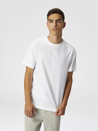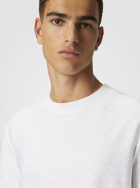 The tone-on-tone zig zag cotton jersey crewneck T-shirt stands out for its subtle but evident texture. The zigzag pattern, characteristic of the maison, gives movement to the garment, while the lightweight fabric wraps naturally, defining a sober yet refined aesthetic. MORE DETAILS - Classic cut polo shirt - Cotton jersey - Tonal zigzag pattern Composition: EXTERNAL:100%Cotton Care instructions: Ironing maximum temperature 110°C - without steam ; Wash max 30°C - Very mild process ; Dry cleaning in tetrachloroethene ; Dry flat ; Do not tumble dry ; Do not bleach Made in: Romania Product ID US25SL09BJ00LJS01FR