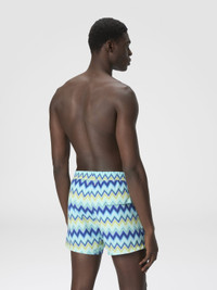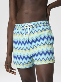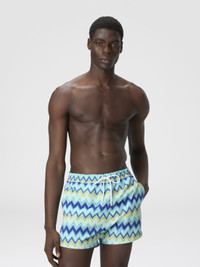 These medium-length men’s swim shorts in nylon stand out for their micro zigzag print, inspired by Missoni’s iconic geometries. The pattern, elegant and dynamic, adds a touch of refinement to the garment’s modern design. Made of lightweight and durable nylon, they offer comfort and practicality, perfect for days at the beach or pool. A must-have for the man who seeks a summer look that combines sophisticated trends and functionality. MORE DETAILS - Medium-length swim shorts - Made of nylon - Micro zigzag print Composition: EXTERNAL:100%Polyester; LINING : 100%Polyester Care instructions: Wash max 30°C - Mild process ; Do not tumble dry ; Do not dry clean ; Do not iron ; Do not bleach Made in: Tunisia Product ID US25WP00BW00Z0SM9TG