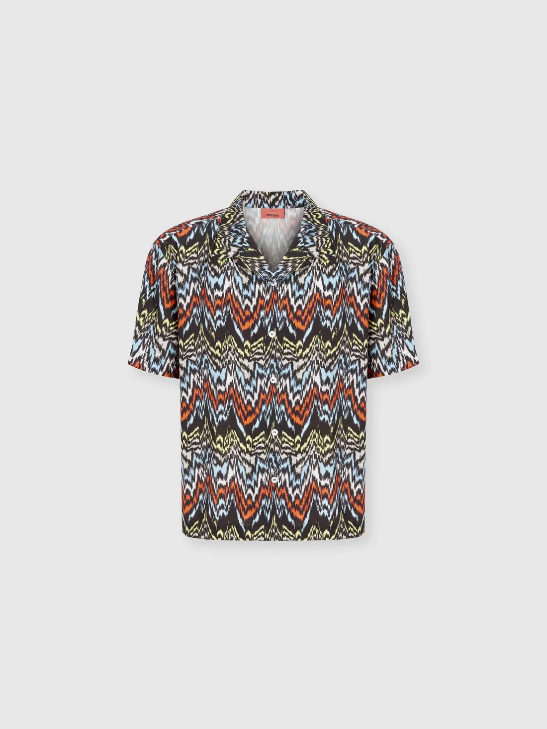 A reinterpretation of Missoni’s classic zigzag comes to life in this men’s bowling shirt in viscose, animated by an abstract zigzag print that translates the Maison’s identity into a modern and effortless language. MORE DETAILS - Men’s bowling shirt - Short sleeves - Abstract zigzag print - 100% viscose Composition: EXTERNAL:100%Rayon Care instructions: Ironing maximum temperature 110°C - without steam ; Wash max 30°C - Mild process ; Wash inside out ; Do not tumble dry ; Iron inside out ; Do not dry clean ; Do not bleach Made in: Tunisia Product ID BS26SJ01BW010MSM9Z1