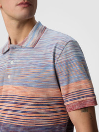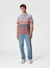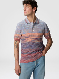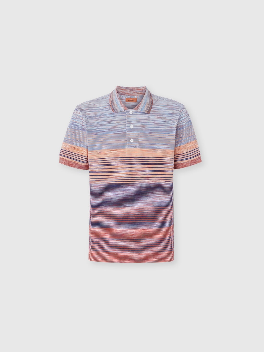 This slub cotton pique polo shirt stands out for its gradient effect that gives depth to the garment. The short sleeves and breathable fabric make it a classic with a contemporary design, where the essence of comfort meets attention to detail. MORE DETAILS - Cotton blend crewneck sweater - Gradient chevron workmanship - Contrasting profiles Composition: EXTERNAL:100%Cotton Care instructions: Ironing maximum temperature 110°C - without steam ; Wash max 30°C - Very mild process ; Dry cleaning in tetrachloroethene ; Do not tumble dry ; Dry flat ; Do not bleach Made in: Romania Product ID US25S20GBJ0014SM9KV