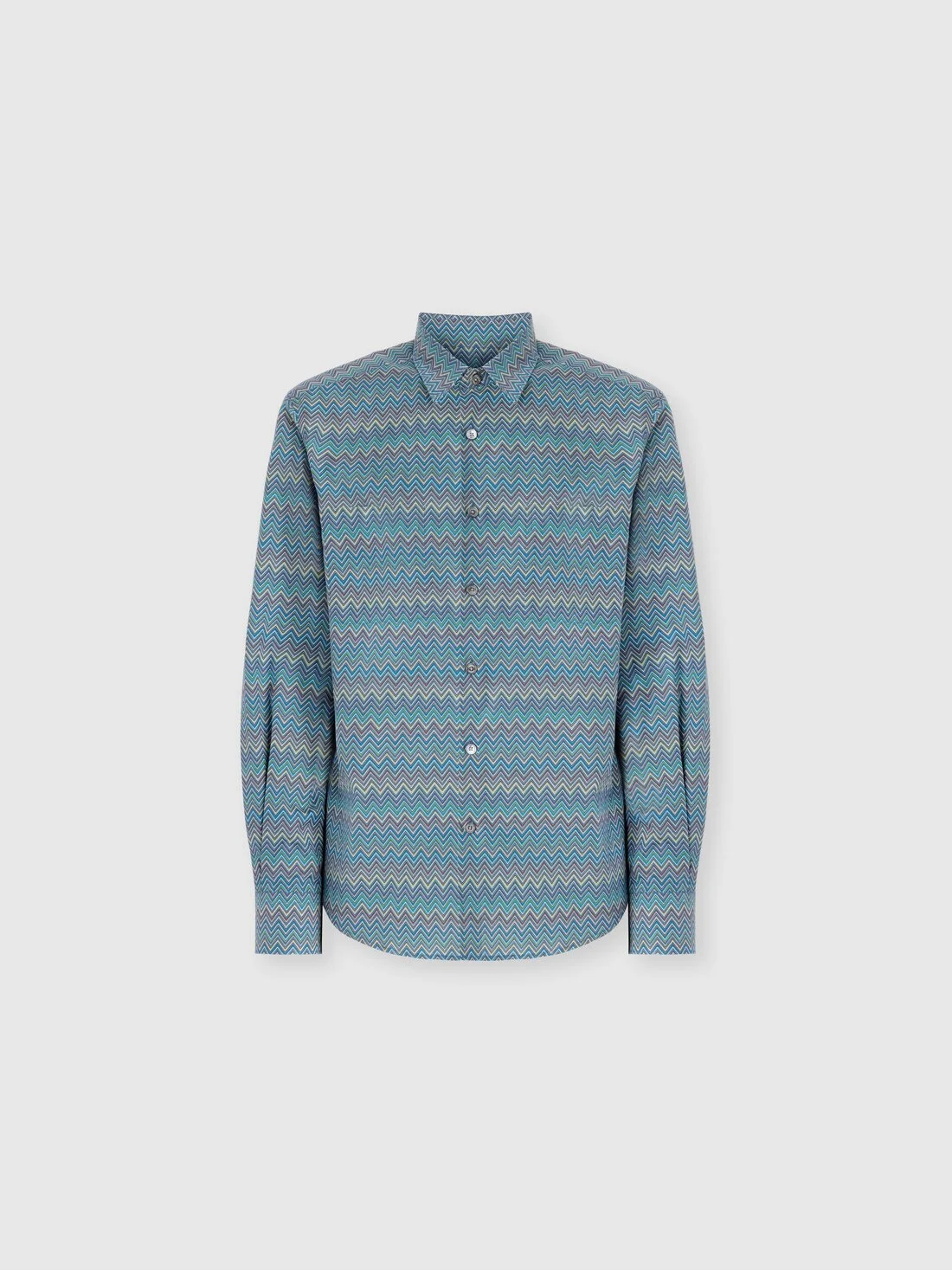 To complete your outfits with a distinctive touch, this men's long-sleeve regular fit shirt in 100% cotton poplin features Missoni's signature zigzag print. A piece that combines elegance and freshness, ideal for those seeking to add a unique and contemporary allure, perfect for any occasion. MORE DETAILS - Shirt regular fit - Zigzag pattern - Cotton poplin - 100% cotton Composition: EXTERNAL:100%Cotton Care instructions: Ironing maximum temperature 110°C - without steam ; Do not dry clean ; Wash max 40°C - Mild process ; Tumble drying at lower temperature ; Do not bleach Made in: Romania Product ID US25WJ00BW00Y1SM9S7