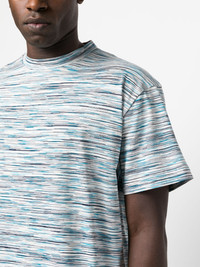 round-neck striped T-shirt Highlights - White - Blue - Black - Cotton - Horizontal stripe pattern - Round neck - Short sleeves - Straight hem - The item you receive may differ slightly from the item photographed. this is due to the artisanal nature with which all missoni products are constructed. Imported Composition Cotton 100% SIZE & FIT Model measurements Height 6 ft 0 in(1.84 m) Bust/Chest 35.82 in(91 cm) Hips 37 in(94 cm) Waist 28.34 in(72 cm) FittingInformation Designed to be unstructured, offering a loose fit throughout Made from a midweight non-stretch fabric, this piece offers minimal elasticity when worn This piece fits true to size – take your usual size Washing instructions Machine Wash