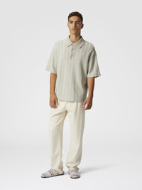 Cotton and viscose polo shirt with tone-on-tone zigzag