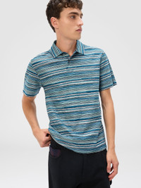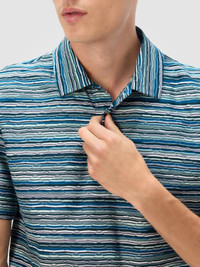 A unique and distinctive pattern defines this short-sleeve men’s polo shirt, regular fit, in striped slub jersey with jacquard zigzag motif. Made from a cotton blend, it combines comfort and style, perfect for those seeking a touch of originality in casual looks. MORE DETAILS - Short-sleeve polo - Slub striped jersey jacquard knit - Zigzag pattern - 100% cotton Composition: EXTERNAL:100%Cotton Care instructions: Ironing maximum temperature 110°C - without steam ; Wash max 30°C - Mild process ; Dry cleaning in tetrachloroethene ; Do not tumble dry ; Do not bleach Made in: Romania Product ID US25W205BJ00OKS72LU