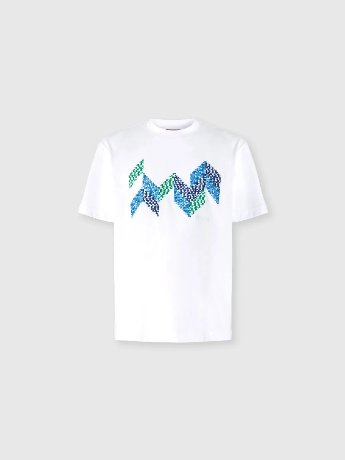 Relaxed but well-finished, this relaxed fit men’s T-shirt in cotton jersey is enhanced by a printed slub-effect insert, which reinterprets Missoni’s famous zigzag with a textural and contemporary twist. The embroidered logo adds a distinctive note, signing the piece with understated elegance. MORE DETAILS - T-shirt short sleeve - Relaxed fit - 100% cotton - Slub zigzag insert - Embroidered logo Composition: EXTERNAL:100%Cotton; TRIMMING:50%Acrylic, 50%Wool Care instructions: Wash max 30°C - Mild process ; Ironing maximum temperature 110°C - without steam ; Wash inside out ; Do not tumble dry ; Iron inside out ; Do not dry clean ; Do not iron decorations ; Do not bleach Made in: Tunisia Product ID US25WL06BJ00OZS01I7