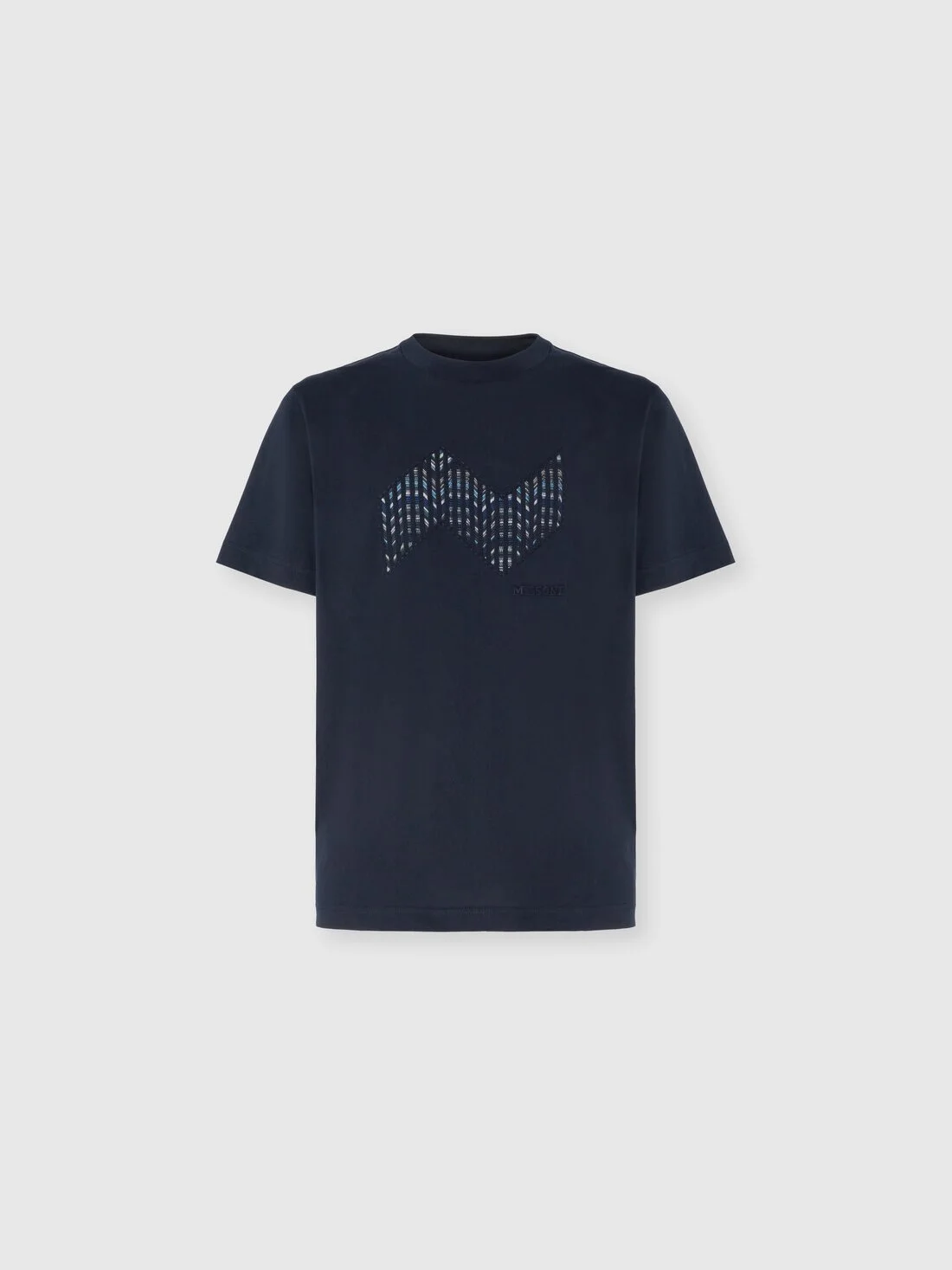 Clean lines and bold graphics define this men’s short-sleeve T-shirt in cotton jersey, offered in a regular fit. The raschel insert highlights an elegant geometric zigzag, reinterpreting one of Missoni’s most iconic patterns with a textural edge. The tone-on-tone embroidered logo adds a subtle yet distinctive touch, signing the garment with elegance. MORE DETAILS - T-shirt short sleeve - Regular fit - 100% cotton - Cotton jersey - Geometric zigzag raschel insert - Logo embroidery Composition: EXTERNAL:100%Cotton; TRIMMING:100%Cotton Care instructions: Wash max 30°C - Mild process ; Ironing maximum temperature 110°C - without steam ; Do not tumble dry ; Do not dry clean ; Do not bleach Made in: Tunisia Product ID US25WL07BJ00OYS72MQ