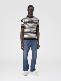 Fresh and contemporary, this men’s short-sleeve T-shirt in 100% cotton reinterprets the classic Missoni motif with a striped micro zigzag full of graphic and sophisticated appeal. The contrasting trim adds a dynamic touch, enhancing the design with subtle originality. MORE DETAILS - T-shirt short sleeve - Micro striped zigzag pattern - 100% cotton - Contrast trims Composition: EXTERNAL:100%Cotton Care instructions: Hand wash ; Ironing maximum temperature 110°C - without steam ; Dry cleaning in tetrachloroethene ; Do not tumble dry ; Dry flat ; Do not bleach Made in: Italy Product ID US25WL05BK01CTSM9RX