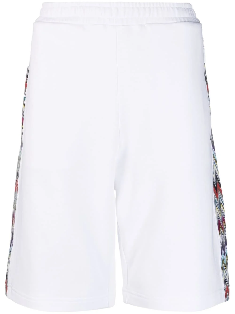 signature zigzag-detail shorts white/multicolour cotton contrasting panel detail signature zigzag woven design elasticated waistband two side zip-fastening pockets knee-length The item you receive may differ slightly from the item photographed. This is due to the artisanal nature with which all Missoni products are constructed. Imported Composition Cotton 100% SIZE & FIT Model measurements Height 6 ft 3 in(1.91 m) Bust/Chest 37 in(94 cm) Hips 37.79 in(96 cm) Waist 28.34 in(72 cm) FittingInformation Designed for relaxed fit, offering a comfortable loose fit over the leg Adjust this piece’s waistband to your preference using the drawstring Made from a midweight non-stretch fabric, this piece offers minimal elasticity when worn This piece fits true to size – take your usual size Washing instructions Machine Wash
