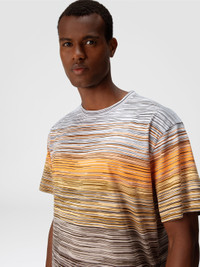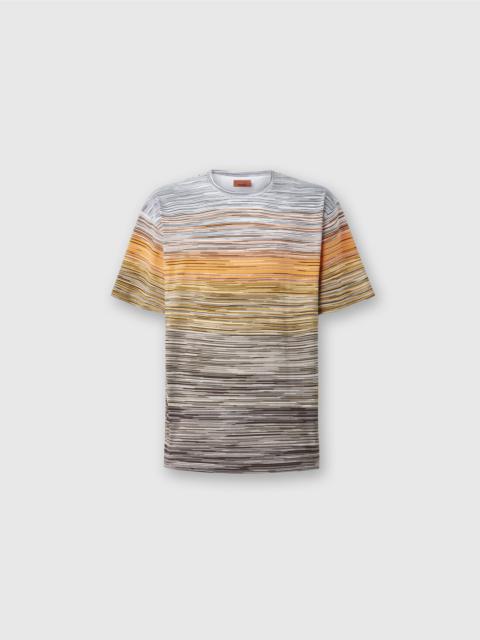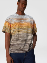 The crew-neck t-shirt is offered with a very Missoni variant: in shaded slub jersey and with a logo print on the back. MORE DETAILS - Crew Neck T-Shirt - Gradient Flame Print - Rear logo lettering Composition: EXTERNAL:100%Cotton Care instructions: Ironing maximum temperature 110°C - without steam ; Dry cleaning in tetrachloroethene ; Wash max 30°C - Very mild process ; Do not tumble dry ; Dry flat ; Do not bleach Made in: Romania Product ID US24WL0ABJ00E5SM9DC