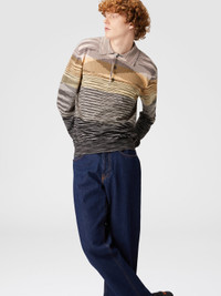 Long sleeves and pure wool yarn for the knitted polo shirt to which the degrade slub pattern, an iconic Missoni motif, gives immediate recognition. Ribbed trim and a three-button fastening complete this staple. MORE DETAILS - Long-sleeved polo shirt - Degrade slub sweater - Ribbed Trims - Three-button closure Composition: EXTERNAL:100%Wool Care instructions: Ironing maximum temperature 110°C - without steam ; Dry cleaning in tetrachloroethene - mild process ; Hand wash ; Do not tumble dry ; Dry flat ; Do not bleach Made in: Italy Product ID US24W208BK015US10AV